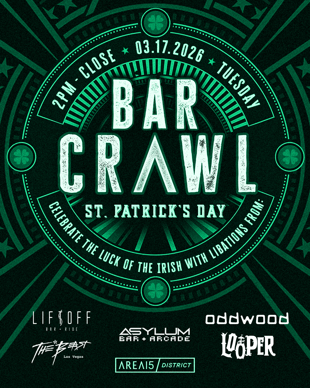 Celebrate St. Patrick’s Day the AREA15 way with a self-guided bar crawl built for roaming, sipping, and discovering at your own pace.
