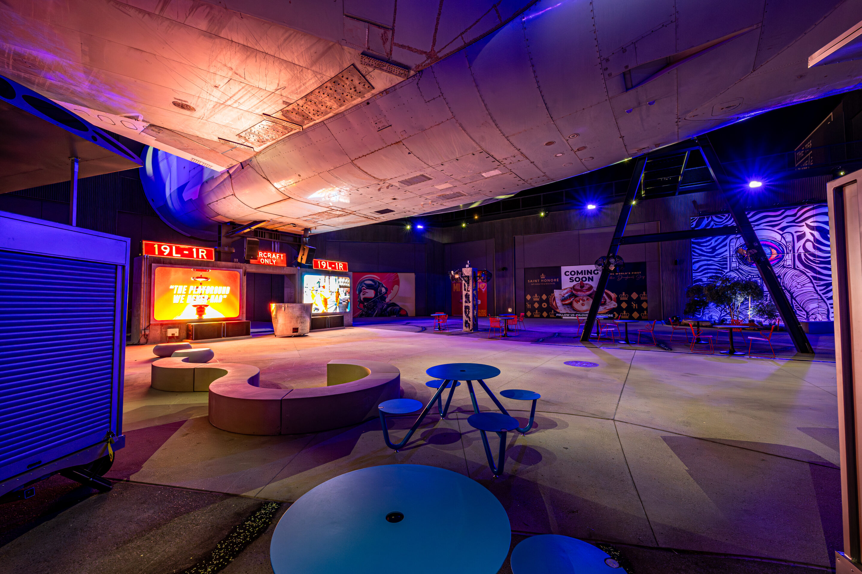 Arriving this summer, Altair Lounge in Zone 2 is an iconic new event venue at AREA15 built around a repurposed Burning Man art plane. This indoor-outdoor space accommodates a guest flow of 800–1,200 and features lounge and formal seating areas, breakout spaces, and opportunities for sponsor activations. Guests can host events inside the aircraft, sip cocktails from the upper deck with panoramic views of the Las Vegas Strip, or dance under the stars in the surrounding plaza. Take your event to new heights at Altair Lounge. Now accepting bookings for June.