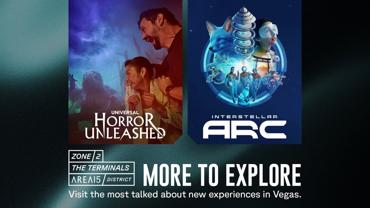 Zone 2: The Terminals is AREA15’s newest immersive expansion — now open and buzzing with new experiences, interactive art, rides, bold installations, and food & beverage. Step deeper into the campus and discover what’s next.